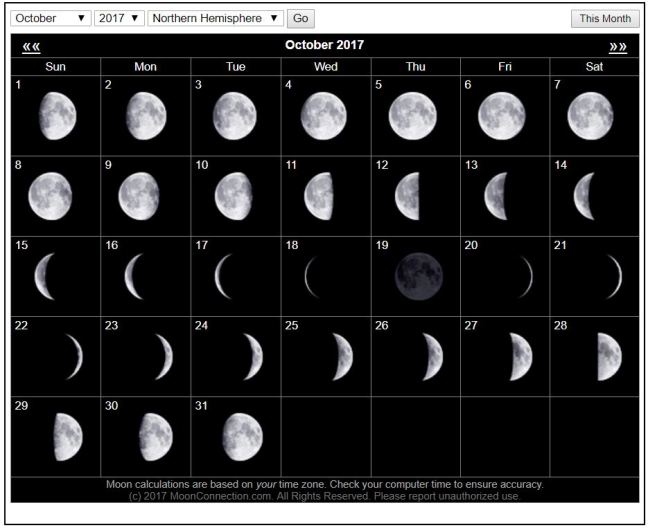 Want to keep track of the waxing and waning moon in the night sky? Here’s the moon calendar for October.